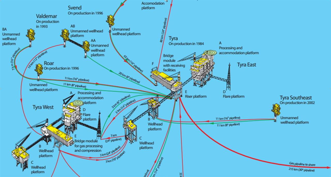 - Phases 1 and 2: These phases consists of Tyra West B, C and D with associated walkways and Tyra East B, C, D and E with associated walkways.